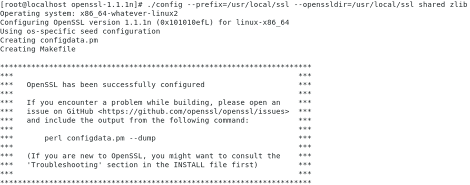 - ./config --prefix=/usr/local/ssl --openssldir=/usr/local/ssl shared zlib