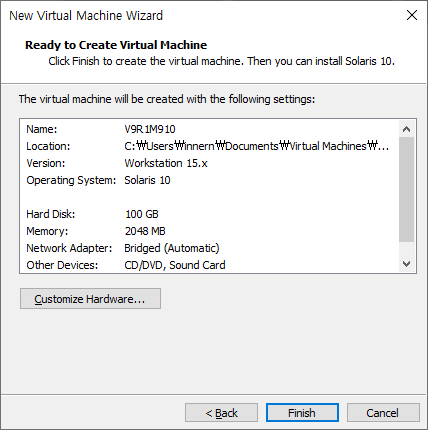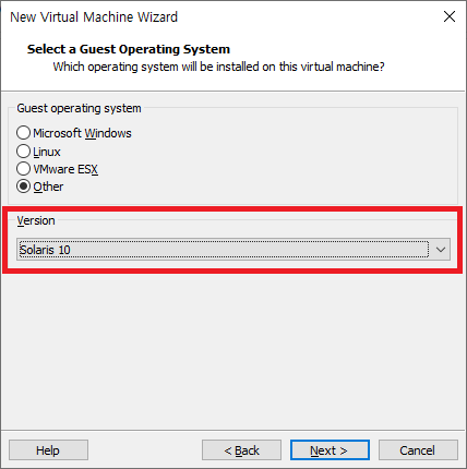 OS 선택 부분에서 Solaris 10 (x86) 버전으로 선택한다.