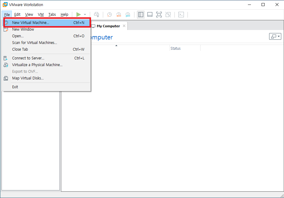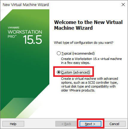 다음과 같이 새로운 vm을 생성한다.