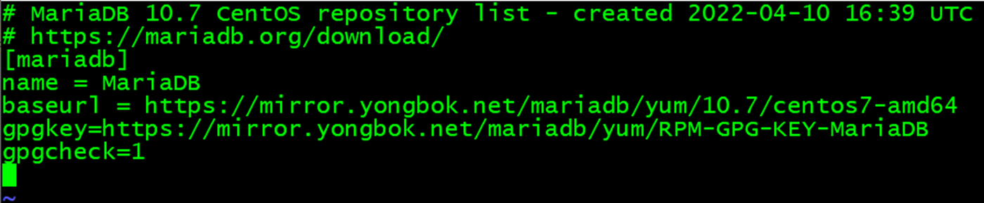 https://mariadb.org/download/?t=repo-config&d=CentOS+7+%28x86_64%29&v=10.7&r_m=yongbok