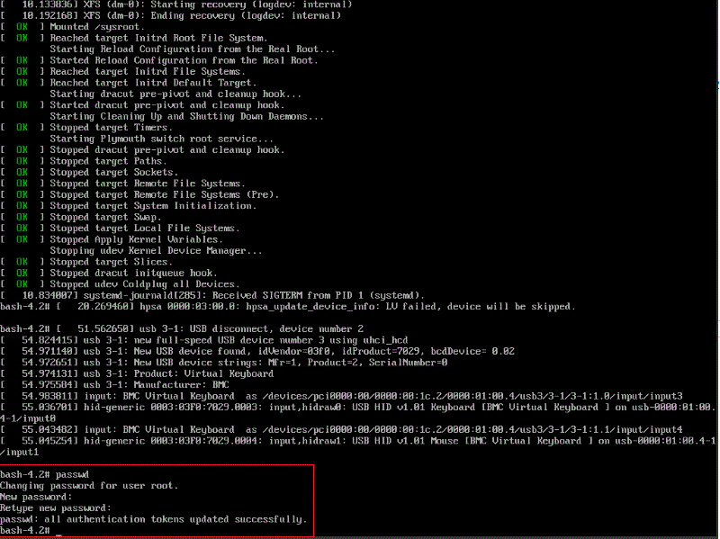 설정이 완료되면 exec /sbin/init 명령어를 입력하여 리부팅 합니다.