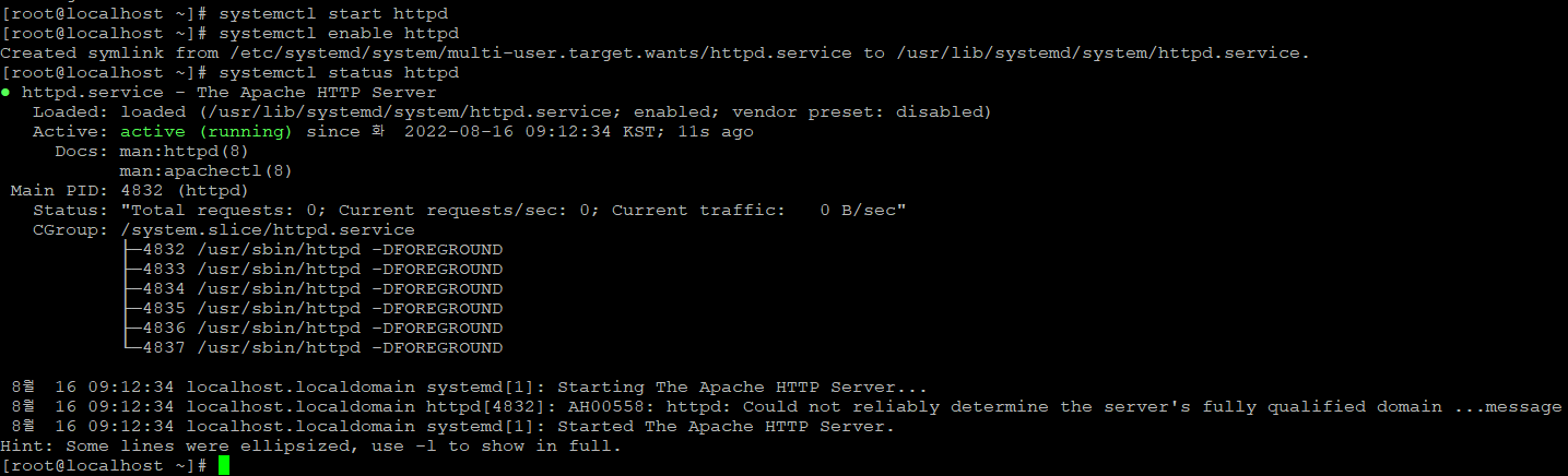 systemctl enable httpd     #apache 서비스를 활성화합니다.
