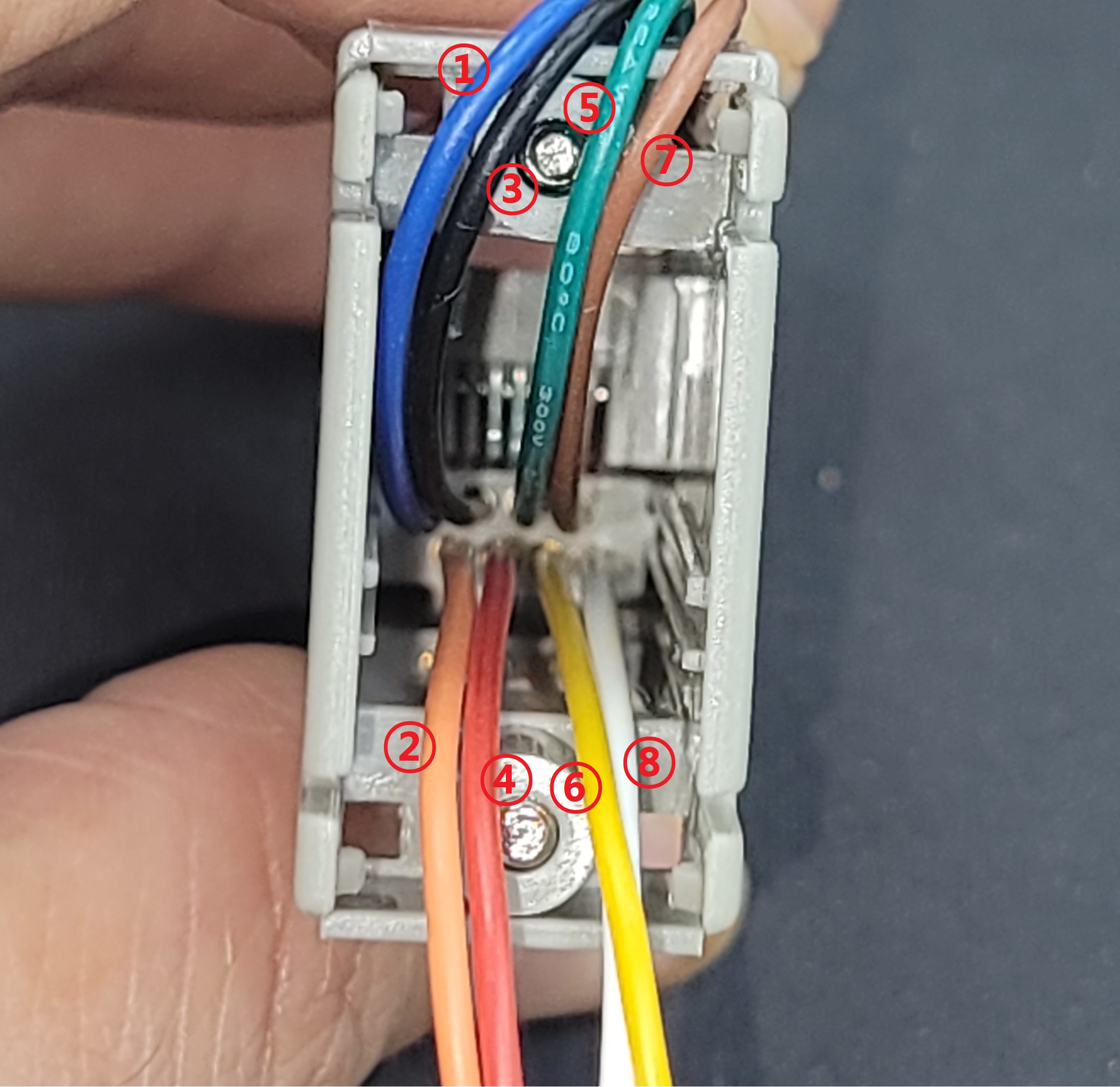 위사진의 1번 핀에 연결된 케이블이 아래 사진의 1번 케이블(파란색)이고 2번핀은 2번 케이블 이런식으로