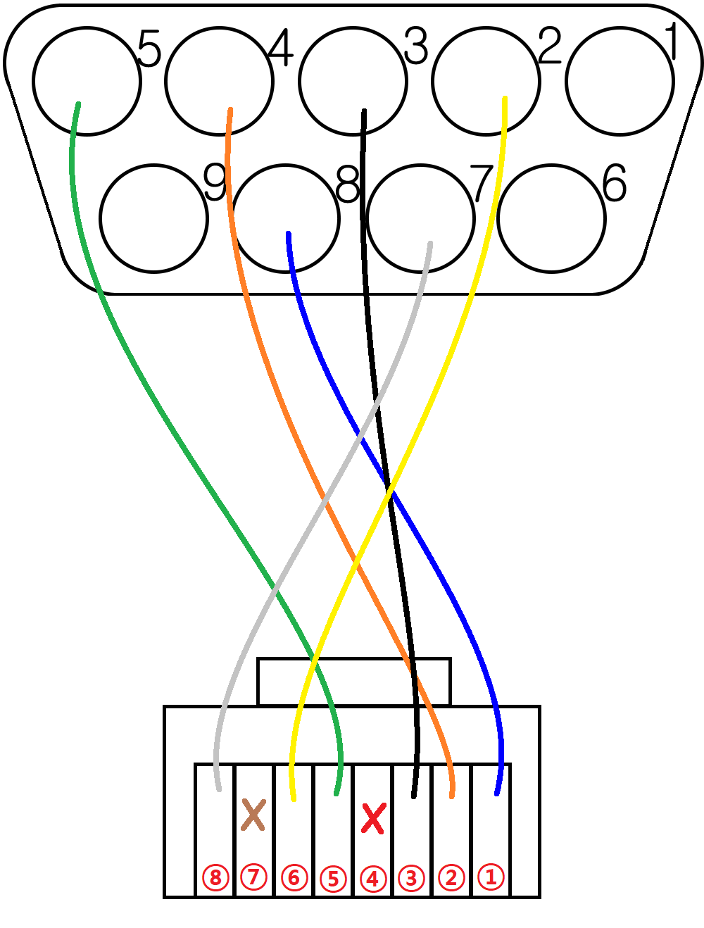 DB9핀 부분을 보면 각 구멍마다 작은 숫자가 써있다.