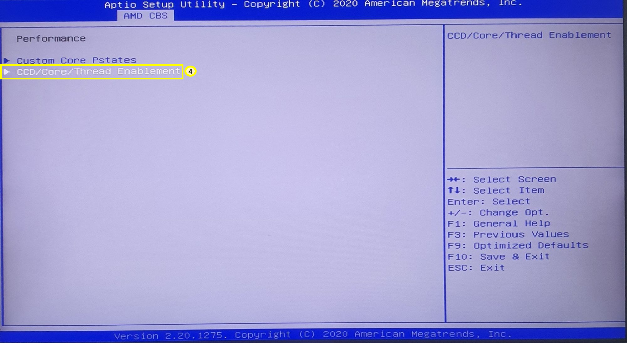 • [Performance] 진입 후 [CCD/Core/Thread Enablement] 선택 후 진입