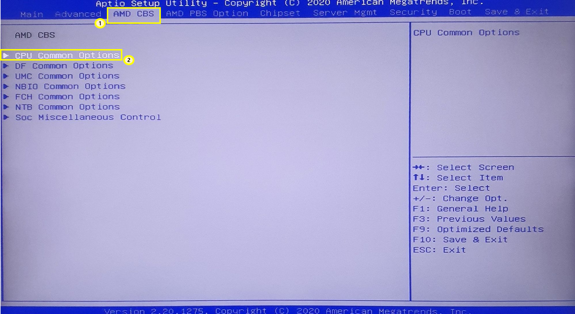 • [AMD CBS] 탭에서 [CPU Common Options] 선택 후 진입