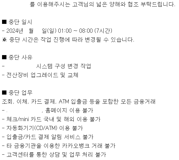 - 작업은 서비스 단절이 발생한다고 고객사에 사전 고지하고 작성할 작업 계획서에도 반영한다.