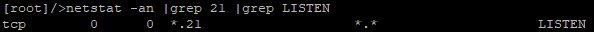 # netstat -an |grep 21 |grep LISTEN