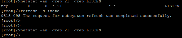 # netstat -an |grep 21 |grep LISTEN