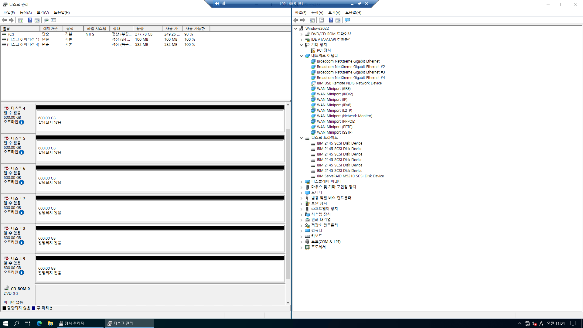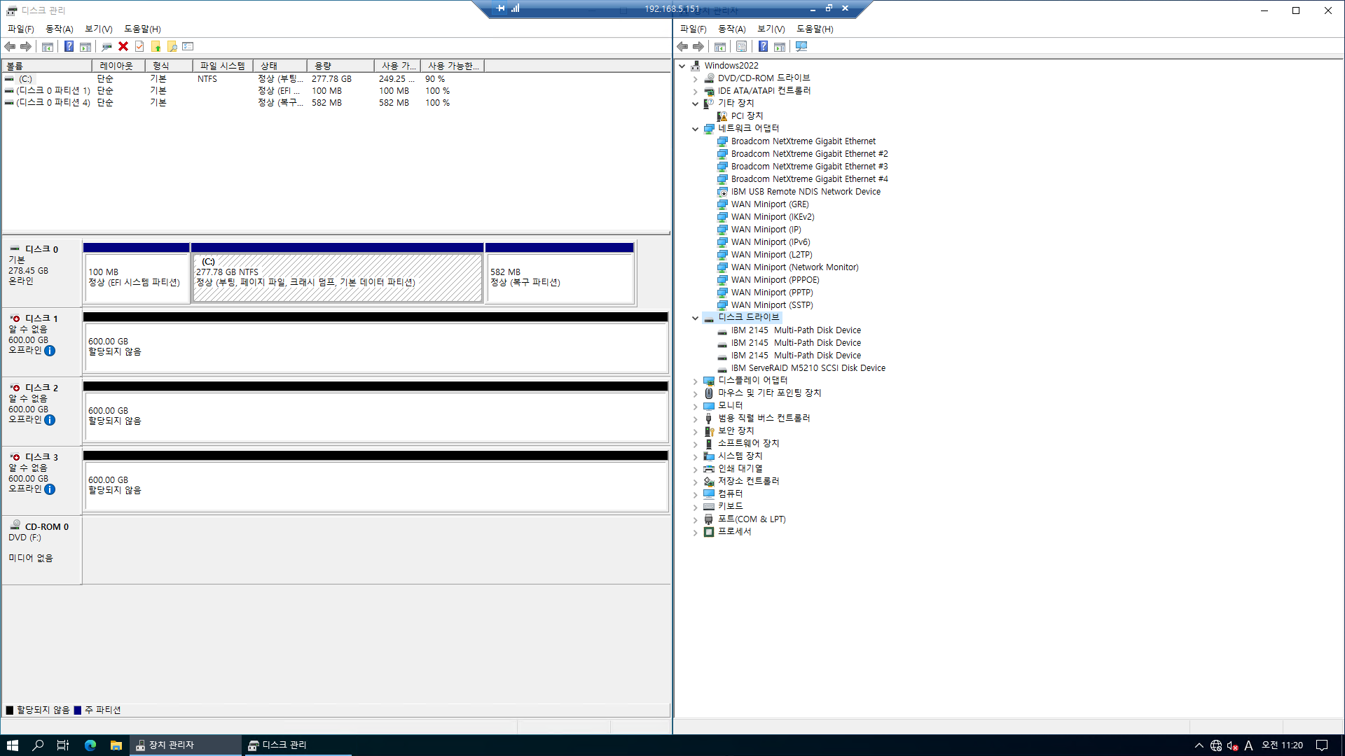 - 이럴 경우 [서버관리자] → [역할 및 기능추가] → [기능에서 "다중 경로 I/O] 설치합니다.