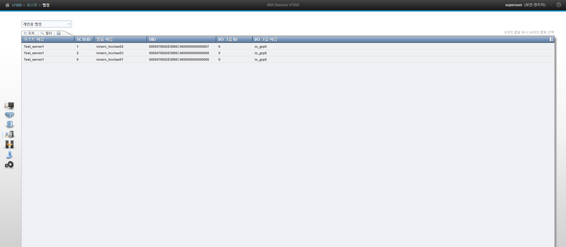 - 테스트 서버에서 사용할 볼륨(LUN) 3개를 구성했습니다.