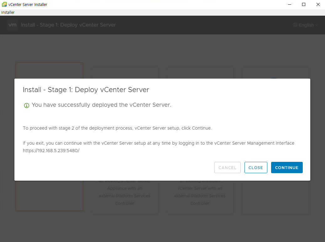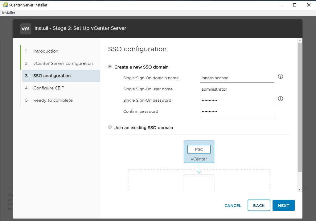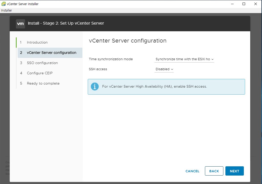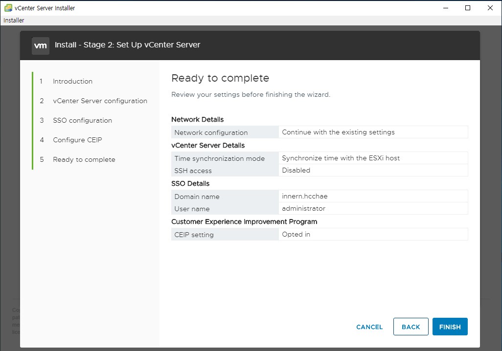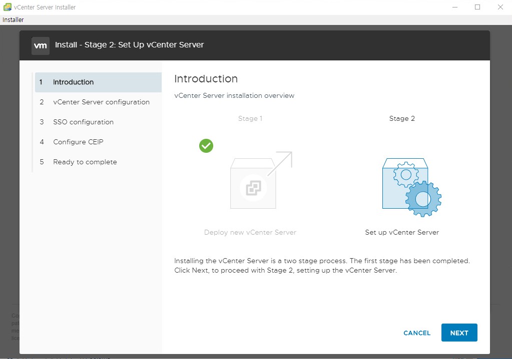 - vCenter Serever 2단계 설치