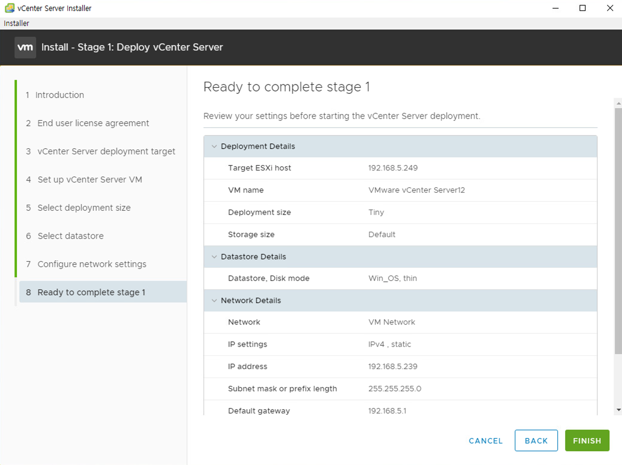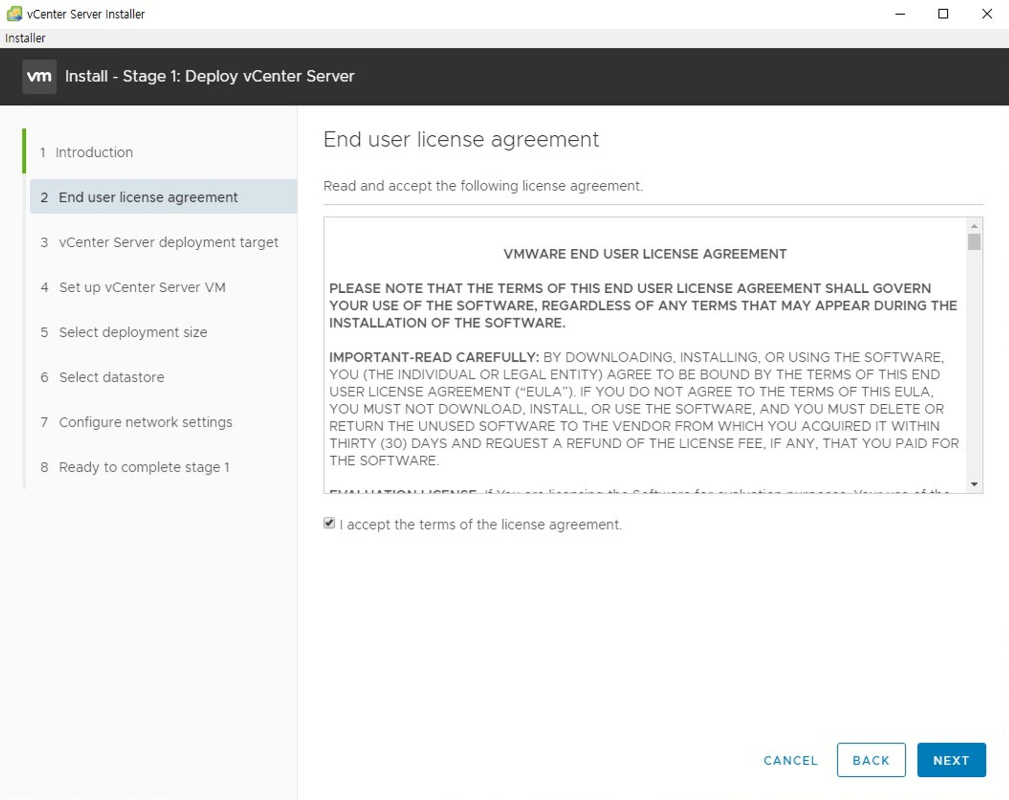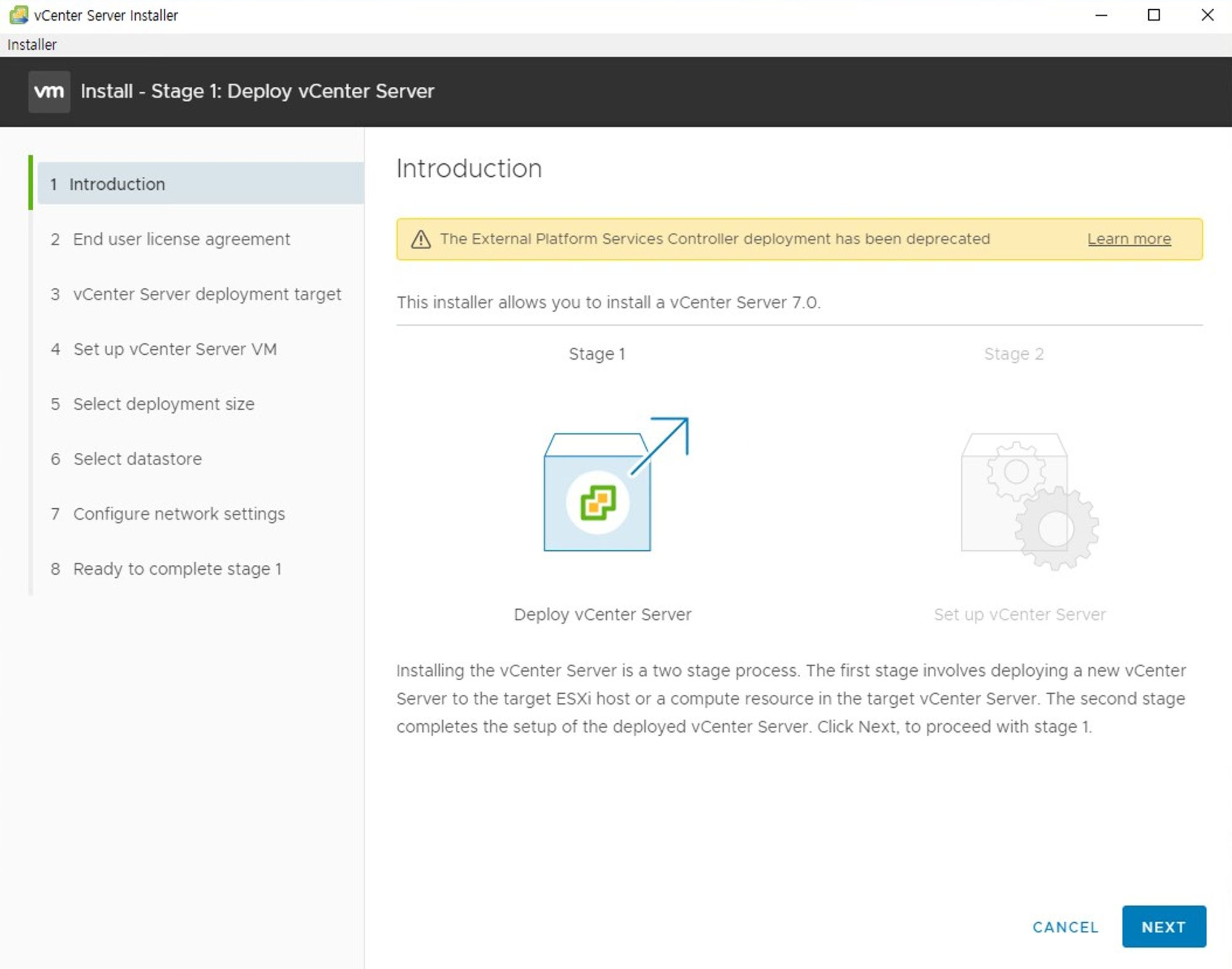- vCenter Serever 2단계 설치