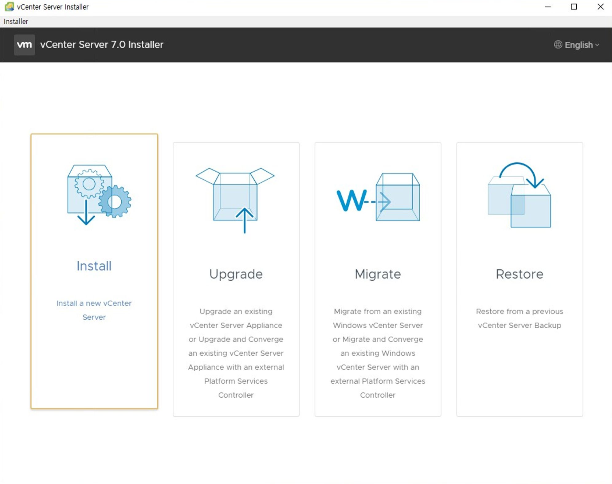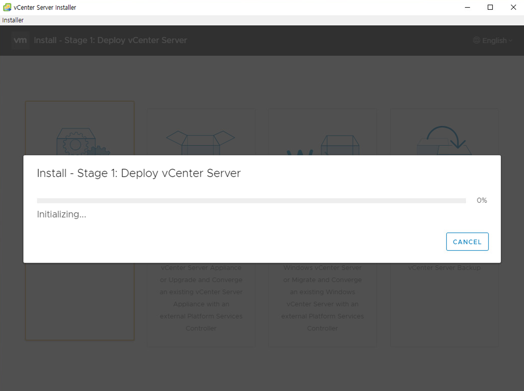 - vCenter iso를 탑재하여 실행하면 아래와 같은 화면이 표시됩니다.