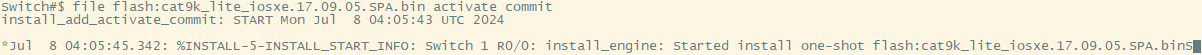Switch# install add file flash:cat9k_lite_iosxe.17.09.05.SPA.bin activate commit