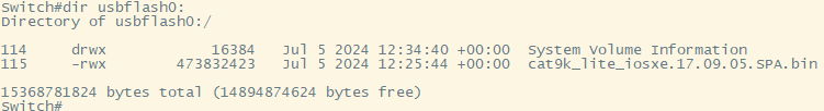 Switch# copy usbflash0:cat9k_lite_iosxe.17.09.05.SPA.bin bootflash: