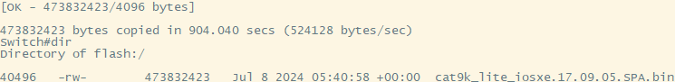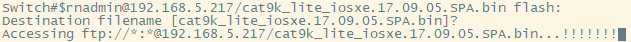Switch# copy ftp://admin:innernadmin@192.168.5.217/cat9k_lite_iosxe.17.09.05.SPA.bin flash: