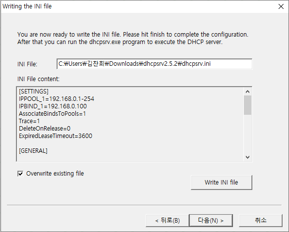 7) 설정값을 파일로 저장. Overwrite existing file 체크 후 write INI file 눌러서 저장