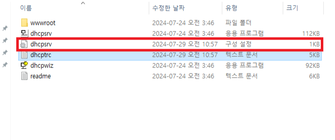 11) DHCP 프로그램 폴더 안에서 dhcpsrv 열기