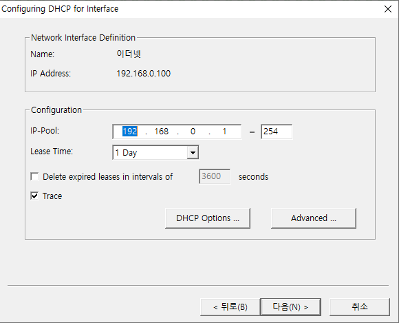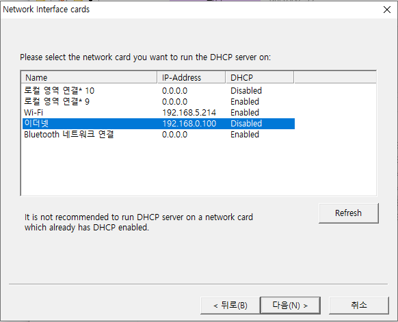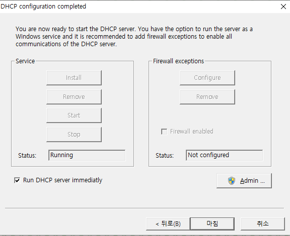 4) DHCP 프로그램 실행 (dhcpwiz 실행)