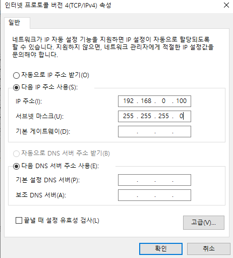 IP-Pool 설정 : 192.168.0.1 ~ 254