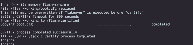 " reload all " 명령어로 reload 하였으면 certified 모드로 진입하시게 되는데, 그러므로 저장을 위해서는 working 모드로 진입하시는 명령어로 리부팅 하셔서 저장과 컨피그를 하시면 됩니다.