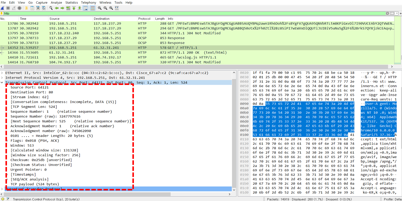 2) Wireshark로 보는 TCP Header 의 구조
