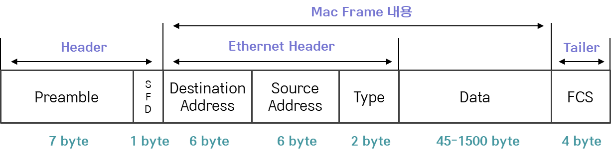 - SFD: 프레임의 시작을 알리는 비트패턴
