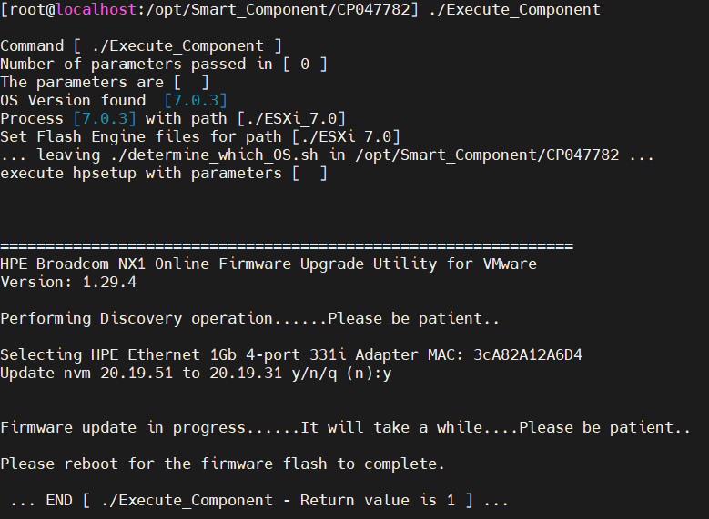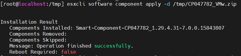 $ esxcli software component apply -d /tmp/CP047782_VMw.zip(경로를 꼭 다 넣어주어야 합니다.)