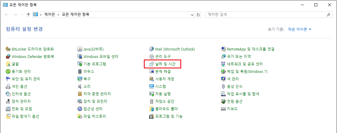 2) 날짜 및 시간 탭에서 인터넷 시간 선택