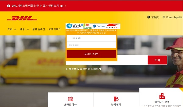 [그림 3] ASEC이 2020년 10월 발견한 DHL 사칭 피싱 페이지
