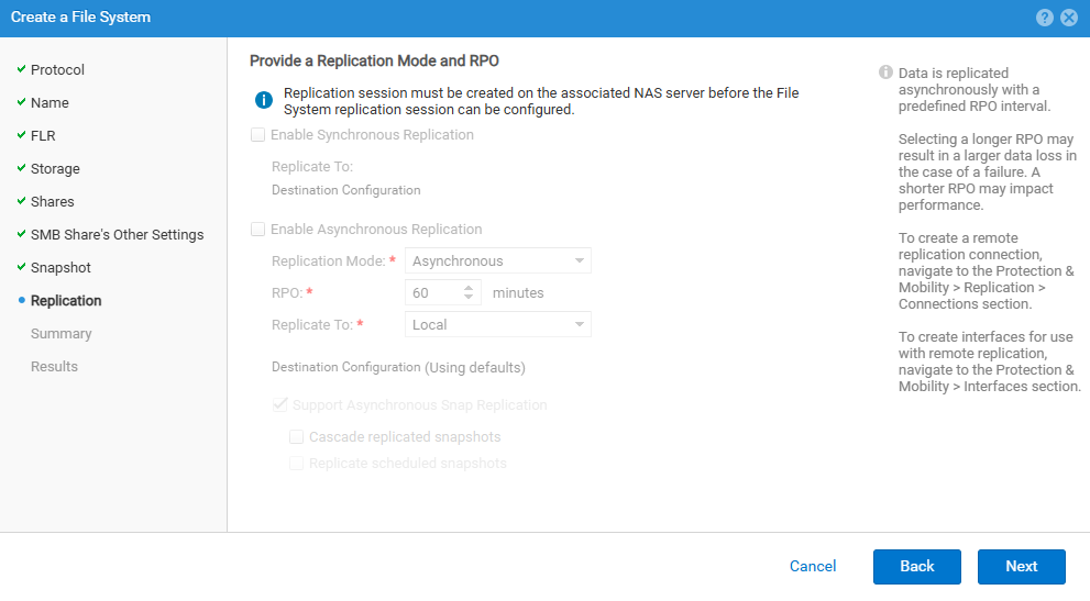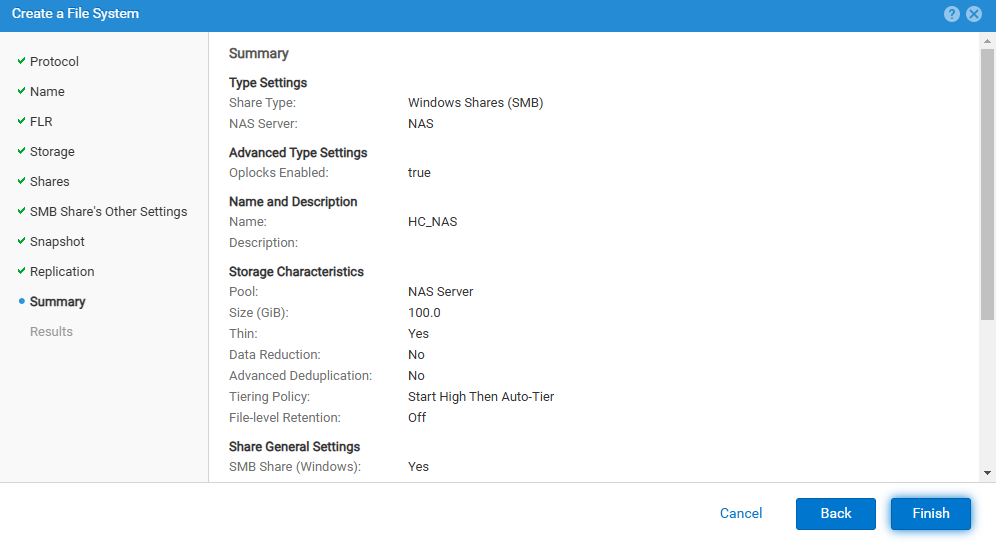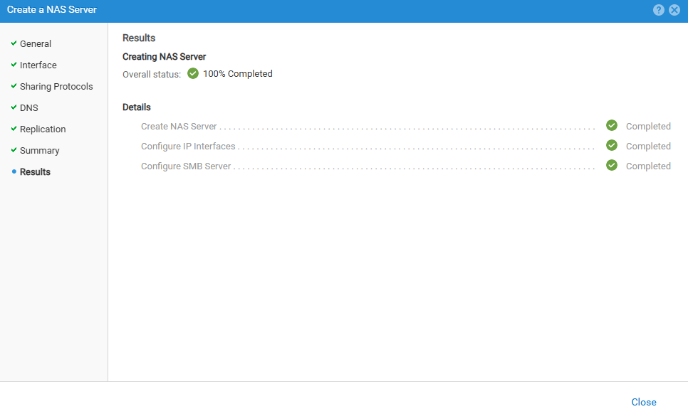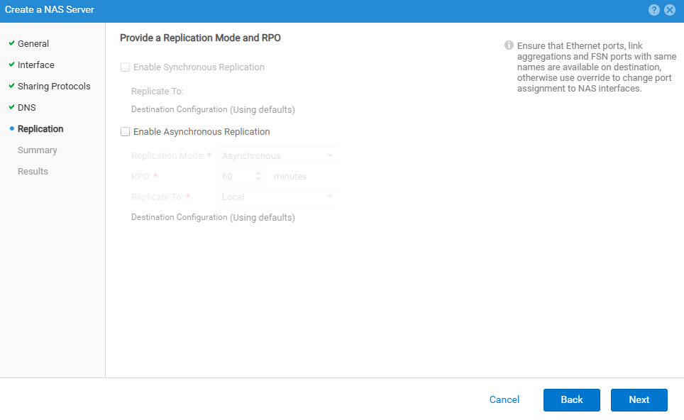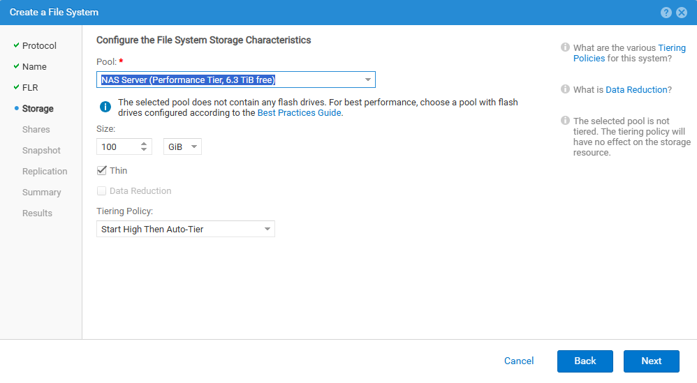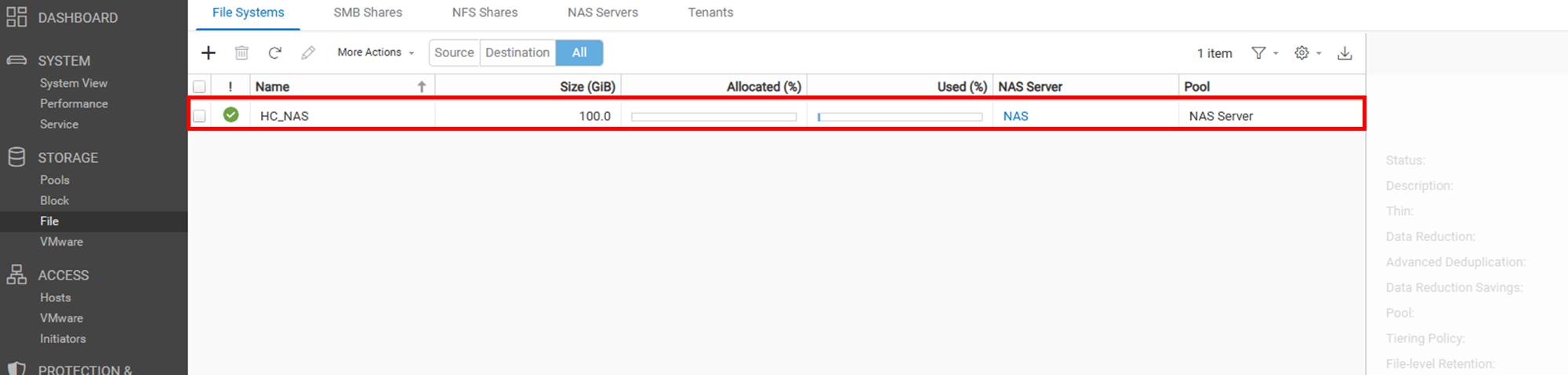 - 사용할 NAS Server 이름, Pool, Storage Processor을 선택합니다.