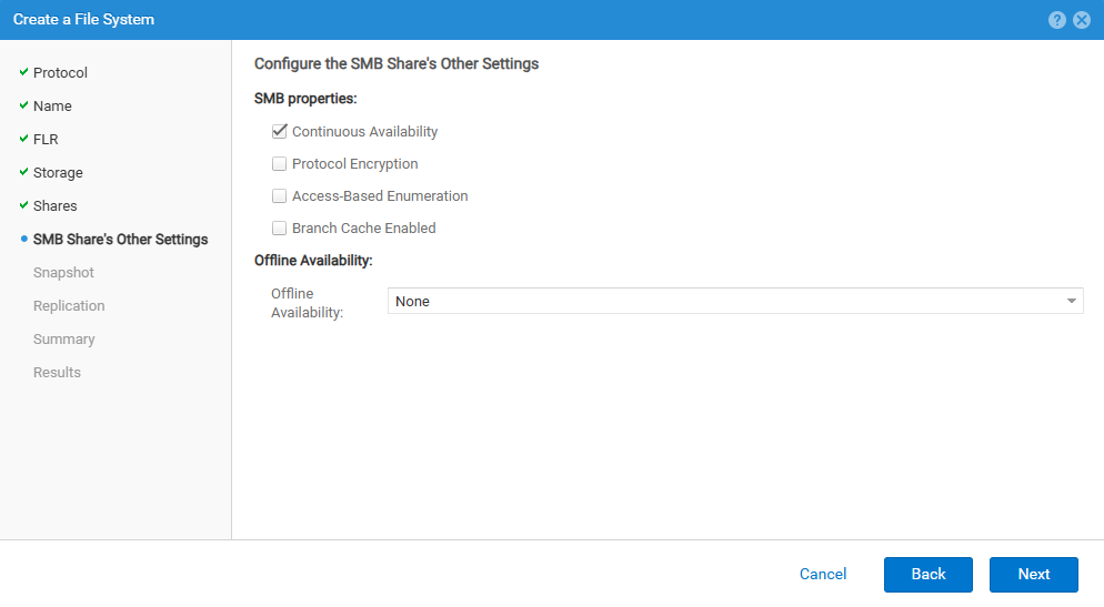 - SMB Shares 탭으로 이동하면 공유할 수 있는 파일 시스템이 생성된 것을 확인할 수 있습니다.