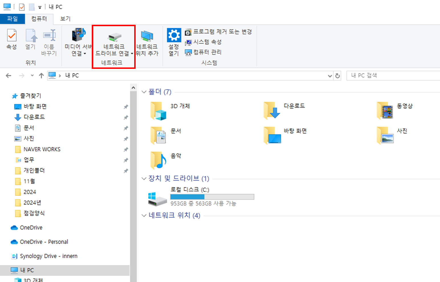 - 내가 만들었던 공유 폴더를 찾아서 선택합니다.