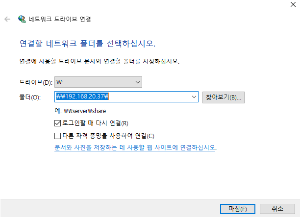 - 예시) "\\NAS_IP\" 입력 → 찾아보기 선택합니다.