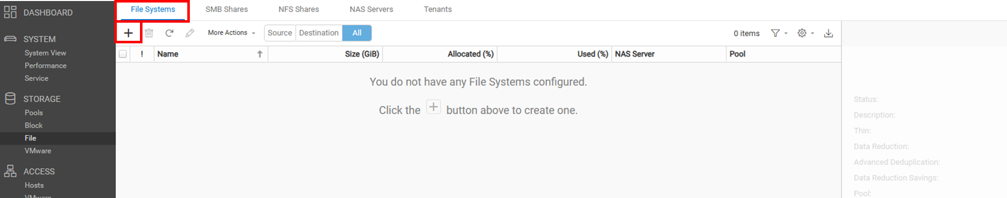 - 상단의 Files Systems 탭으로 이동 후 플러스[+]를 선택합니다.