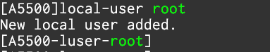 config 모드에서 " local-user [계정명] " 으로 생성한 뒤 , luser-root 로 진입된 것을 확인할 수 있습니다.
