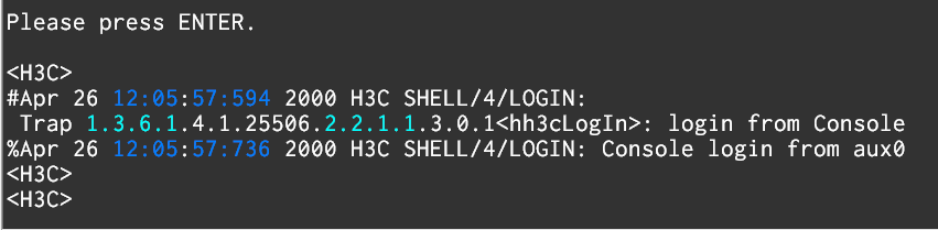 처음 접속을 하면, 나오는 화면입니다. <H3C > 상태에서는 흔히, cisco 사의 " enable 모드" 처럼 " display " 명령어로