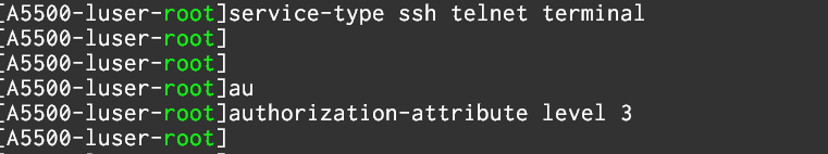 config 모드에서 " local-user [계정명] " 으로 생성한 뒤 , luser-root 로 진입된 것을 확인할 수 있습니다.