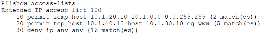 access-list 100 permit icmp host 10.1.20.10 10.1.0.0 0.0.255.255
