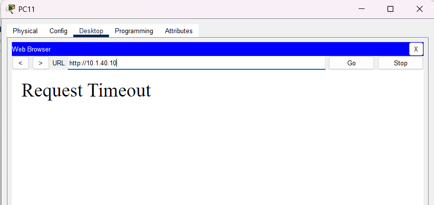 - PC11에서 Server1로 HTTP 접속은 막을 것