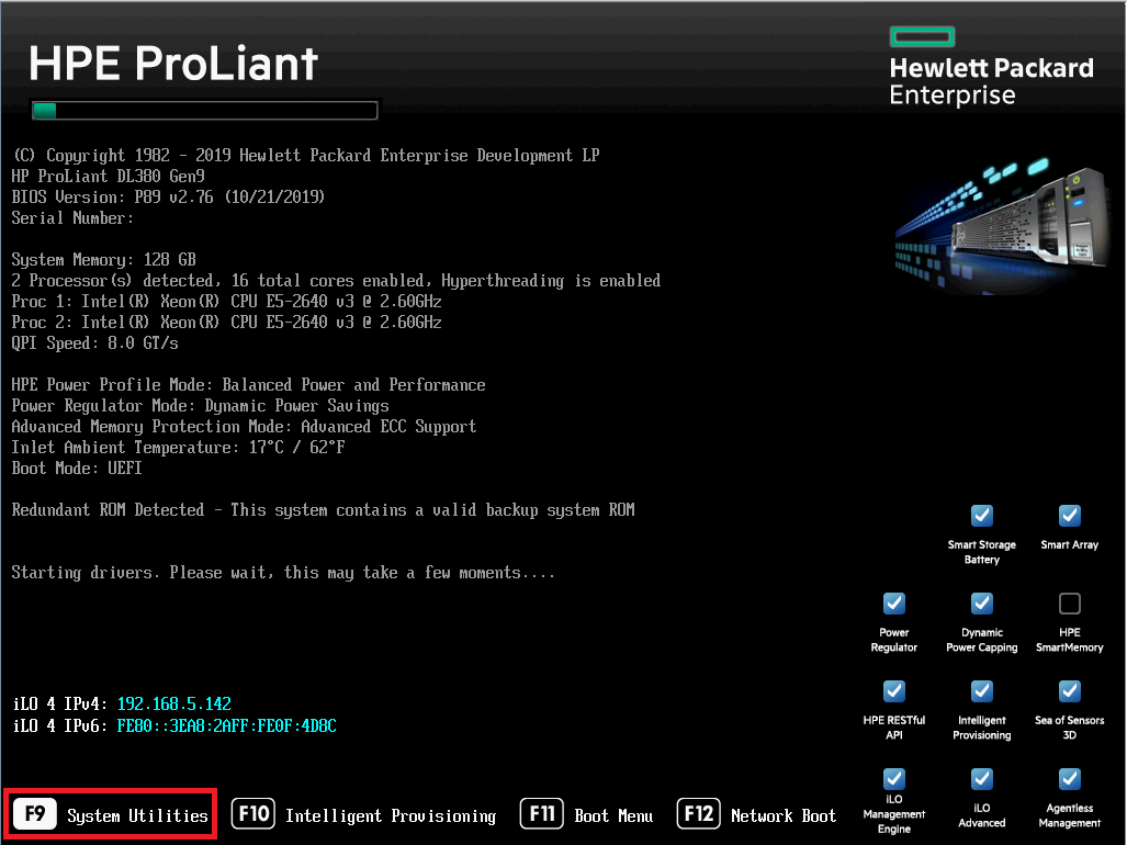 F9 버튼을 눌러 System Utilities 접속 합니다.