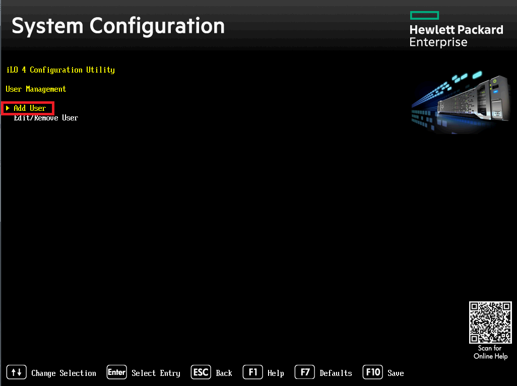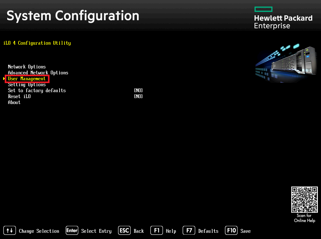 iLO 계정을 추가하기 위해 iLO 4 Configuration Utility 화면에서 User Management를 눌러줍니다.