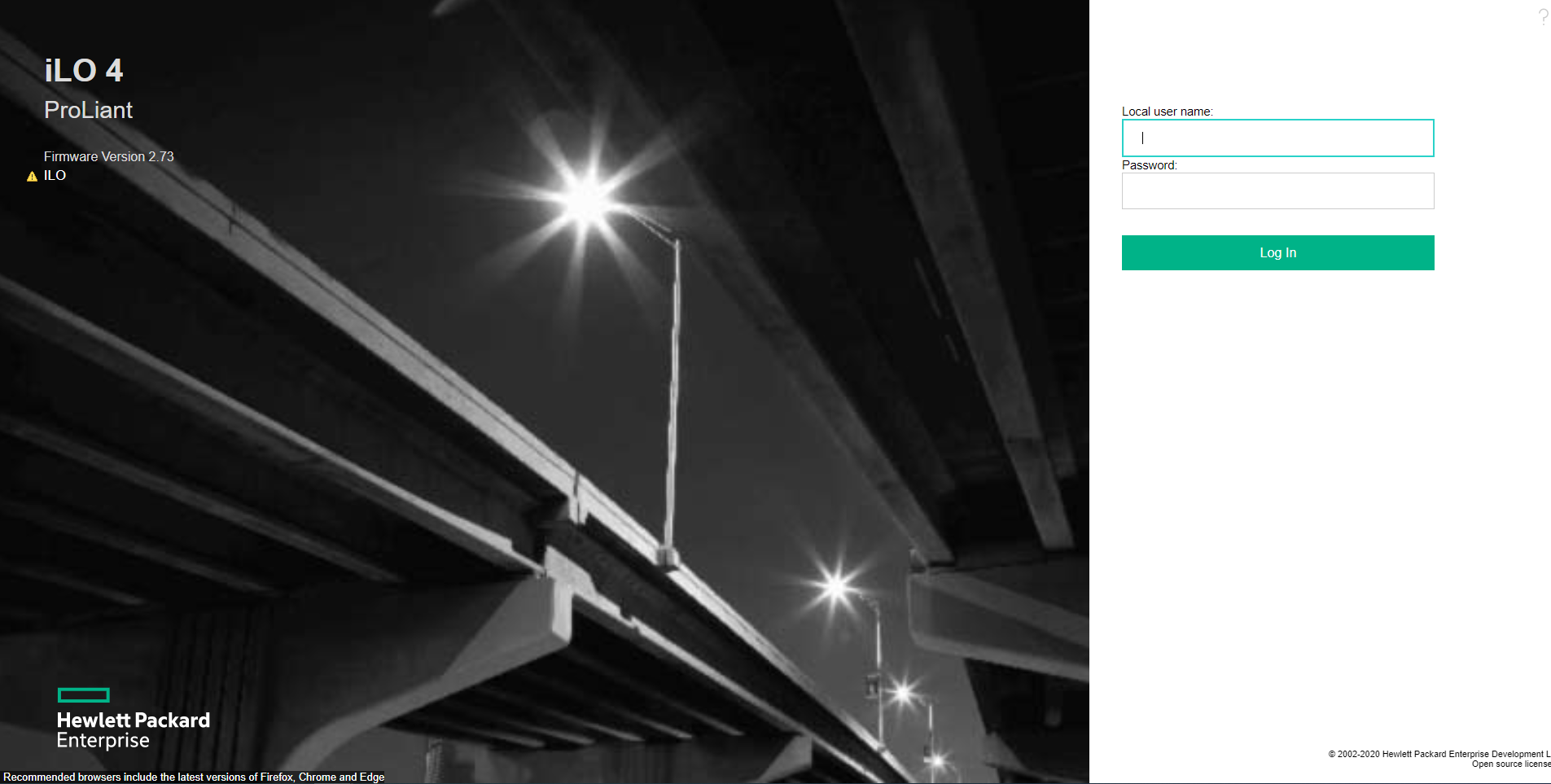 iLO 로그인 화면입니다.