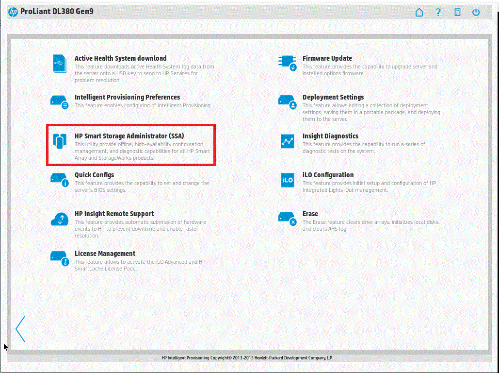 HP Smart Storage Administrator (SSA) 를 선택 합니다.