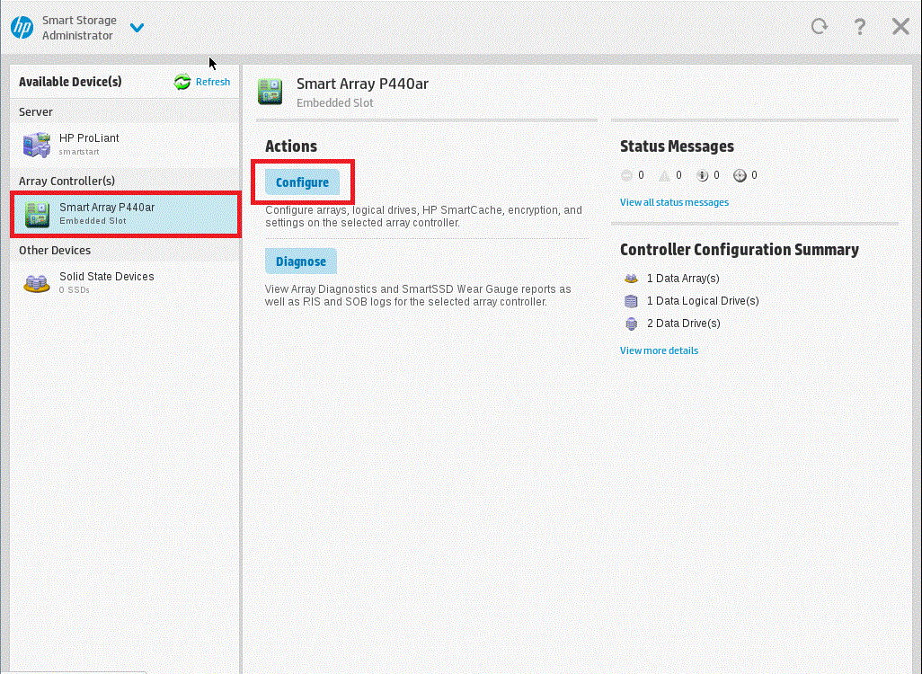 좌측 Smart Array 를 누르고 configure 선택 합니다.