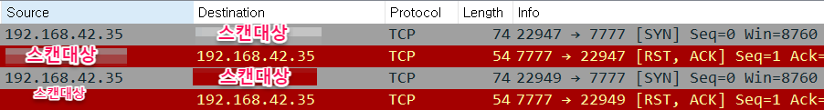 - 서버에서 RST, ACK를 보내는 것으로 닫힌 포트임을 확인