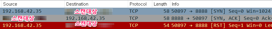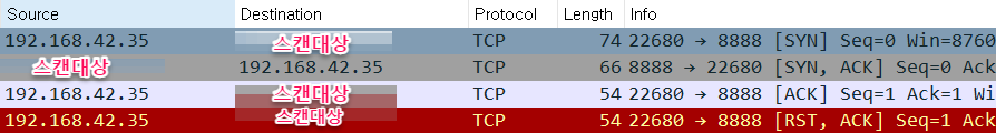 1. 열린 포트 : SYN-ACK → 공격자 RST