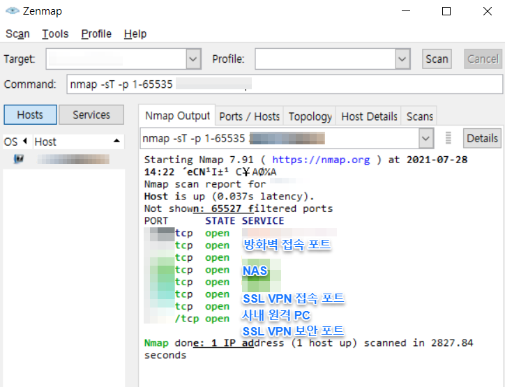 - nmap을 통한 방화벽 접속 포트, NAS 포트 등 열려있는 포트 확인