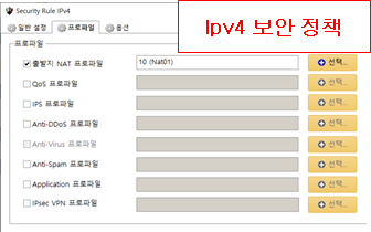 3. 정책 -> IPv4 보안 정책 -> 프로파일 -> 출발지 NAT 프로파일 선택